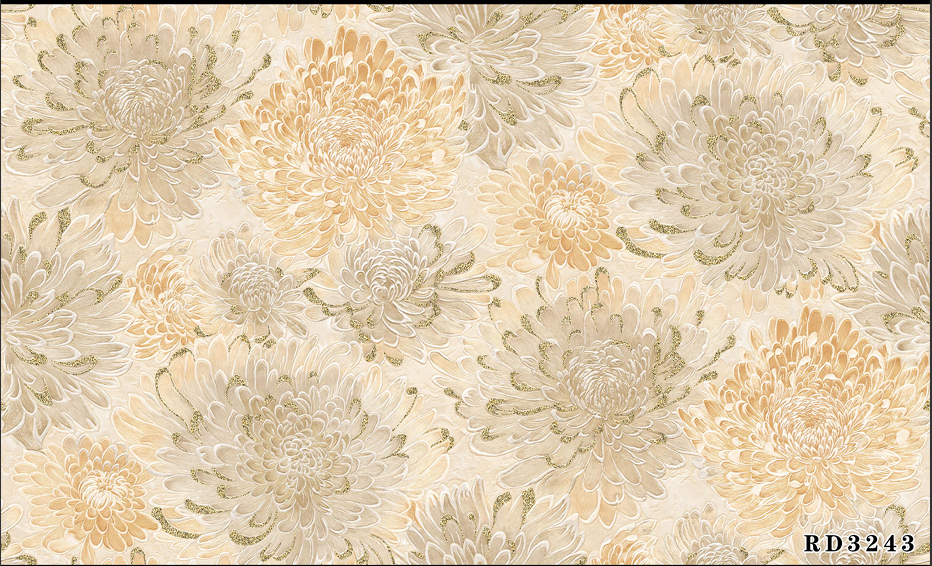 Bloom Aura wallpaper features lush, detailed chrysanthemum patterns in calming pastel blues, elegant creams, soft golds, and striking blacks, bringing life and sophistication to any space. This design creates a gentle yet vibrant statement wall, perfect for both modern and classic interiors such as bedrooms, living rooms, or lounges. The durable and easy-to-clean surface ensures long-lasting beauty, making Bloom Aura an ideal choice for stylish homes that want to showcase florals with a serene, contemporary flair