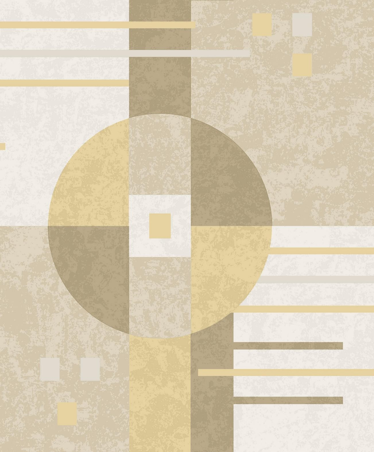 Modern GeoArt wallpaper showcases striking geometric shapes—circles, squares, and lines—in balanced, earthy tones and tactile textures. This contemporary design seamlessly blends art and architecture, infusing rooms with a sense of creativity and structure, making them perfect for transforming plain walls into modern, gallery-like features in living rooms, bedrooms, and offices.